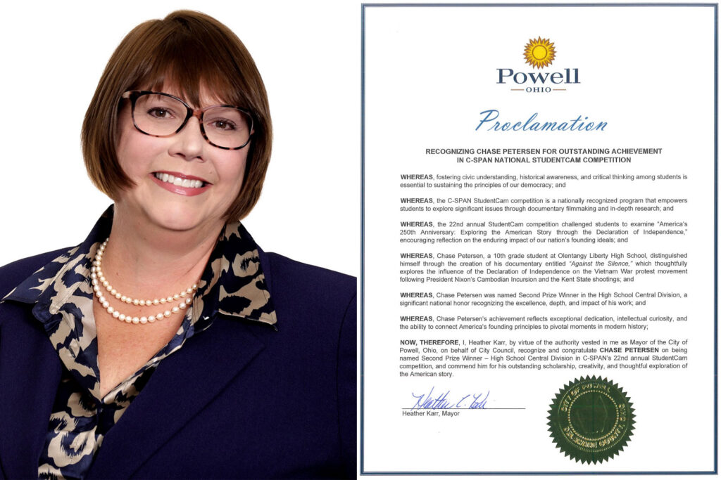 Chase Petersen from Olentangy Liberty High School in Powell, Ohio won 2nd Prize in the High School Central Division for his video titled, “Against the Silence,” about the Declaration of Independence’s influence on the Vietnam War protests following President Nixon’s Cambodian Incursion and the Kent State shooting. As a 2nd Prize winner, Chase collects $1,500 in prize money.